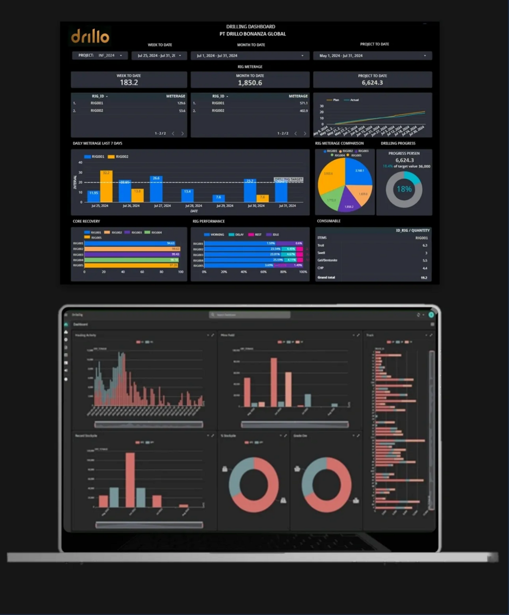 Easily input and turn your data into interactive dashboards. DrilloViz is a data visualization solution built for the mining industry, simplifying the analysis and display of operational and management data. Every dashboard is unique catering to your needs.